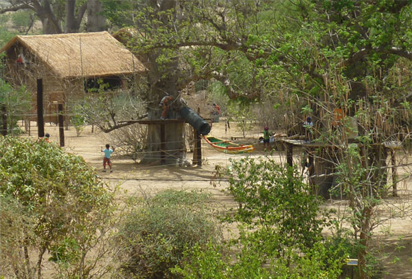 Un week end à 70 km de dakar à 5km de la mer et à 1km de la réserve animalière de bandia dans la forêt de baobabs, accrobaobab vous propose son gite de « courtoisie ».