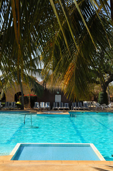 Notre somptueuse piscine, articule autour d’elle tous les services de l’hôtel : deux restaurants des plus raffinés, un grand bar, un espace détente (massages), deux salles de séminaires, une salle de fitness et un bâtiment pittoresque où l’on découvre les joies du méchoui à la belle étoile, et la décontraction de notre lounge bar.